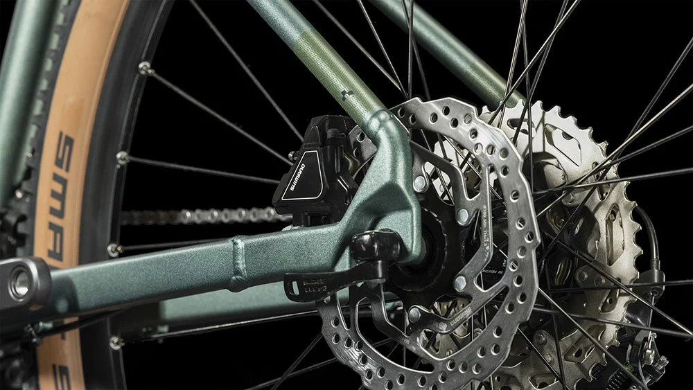 Der Access WS Rahmen besticht mit einem supercleanen Look. Verantwortlich dafür: die im Smooth Welding Verfahren hergestellten Verbindungen am Steuerrohr und Sattelstützenprofil. Außerdem hat Cube die Züge ins Innere verlegt, damit sie ihre Aufgabe lange machen und leicht gewartet werden können. Es gibt sogar eine Aufnahme für eine Flat-Mount-Scheibenbremse, die nahtlos in die Seitenständeraufnahme integriert ist. Montagepunkte für ACID Schutzbleche und Gepäckträger sind auch mit dabei. Die Geometrie hat ein niedrigeres Oberrohr für zuverlässiges Handling und lässt viel Platz für breite, griffige, komfortabel rollende 2.25 Zoll Reifen. Dank des breit aufgestellten Size Split Systems findet jede Fahrerin die perfekt passende Access WS Rahmengröße für sich.