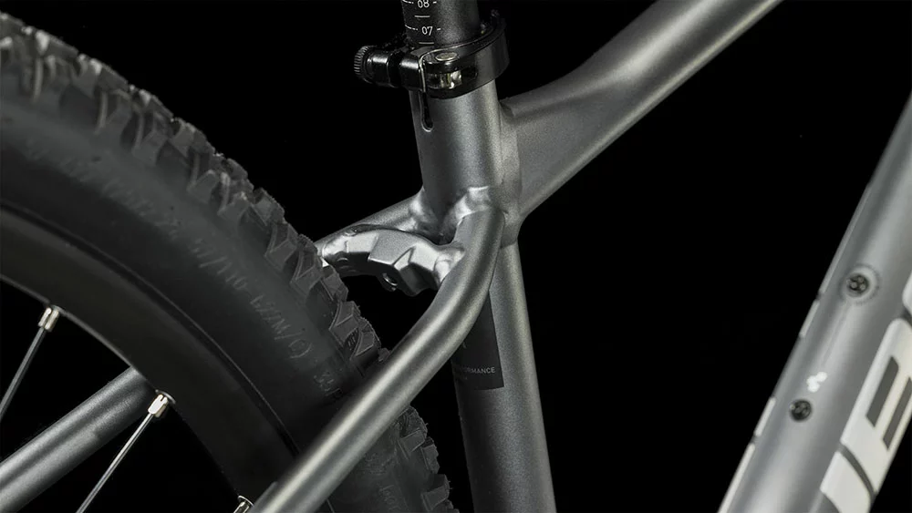 Der brandneue Aim Rahmen besticht mit einem überarbeiteten, supercleanen Look. Verantwortlich dafür: die im Smooth Welding Verfahren hergestellten Verbindungen am Steuerrohr und Sattelstützenprofil. Außerdem hat Cube ihm ein geschraubtes Tretlager gegeben und die Züge ins Innere verlegt, damit sie ihre Aufgabe lange machen und leicht gewartet werden können. Es gibt sogar eine Aufnahme für eine Flat-Mount-Scheibenbremse, die nahtlos in die Seitenständeraufnahme integriert ist. Montagepunkte für ACID Schutzbleche und Gepäckträger sind auch mit dabei. Die überarbeitete Geometrie hat ein niedrigeres Oberrohr für noch zuverlässigeres Handling und lässt viel Platz für breite, griffige, komfortabel rollende 2.25 Zoll Reifen. Auch das SizeSplit System ist jetzt breiter aufgestellt – dadurch findet jeder und jede die perfekt passende Aim Rahmengröße für sich.