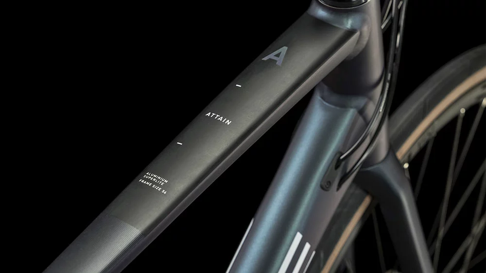 Wer seinem Lieblingssport frönt, sollte sich nicht quälen müssen. Deshalb hat CUBE bei der Entwicklung des Attain Rahmens aus 6061er-Aluminium (inklusive Aufnahmen für Scheibenbremsen) auch viel Wert auf Performance bei zugleich hohem Komfort gelegt. Durch die doppelt konifizierten Rohre wurde, wo möglich, Gewicht gespart – selbstverständlich ohne Einbußen in Sachen Stabilität und Steifigkeit. Das konische Steuerrohr sorgt für ein präzises Lenkverhalten. Und die schlanken Sitzstreben und die Vollcarbongabel schlucken etwaige Schläge und Vibrationen vom Straßenbelag und optimieren so den Fahrkomfort. Last, but not least verleihen die im Smooth Welding Verfahren gestalteten, glatten Rohrverbindungen dem Chassis seinen cleanen, überaus edlen Look.