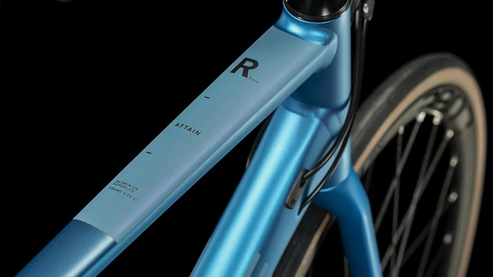 Jeder sollte seinen Lieblingssport maximal genießen können, deshalb hat CUBE bei der Konzeption des Attain Rahmens aus 6061er Aluminium (inklusive Aufnahmen für Scheibenbremsen) viel Wert auf Komfort und Performance gelegt. Durch die doppelt konifizierten Rohre wurde, wo möglich, Gewicht eingespart, selbstverständlich ohne Einbußen in Sachen Stabilität und Steifigkeit. Das konische Steuerrohr und Steckachsen vorne und hinten sorgen für ein superpräzises Lenkverhalten und maximale Kraftübertragung. Außerdem reduzieren die schlanken Sitzstreben und die Vollcarbongabel etwaige Vibrationen vom Straßenbelag und erhöhen so den Fahrkomfort spürbar. Mit dem Smooth Welding Verfahren konnte CUBE die Rohrverbindungen zudem glatt und clean gestalten, was dem Chassis seinen edlen Look verleiht.