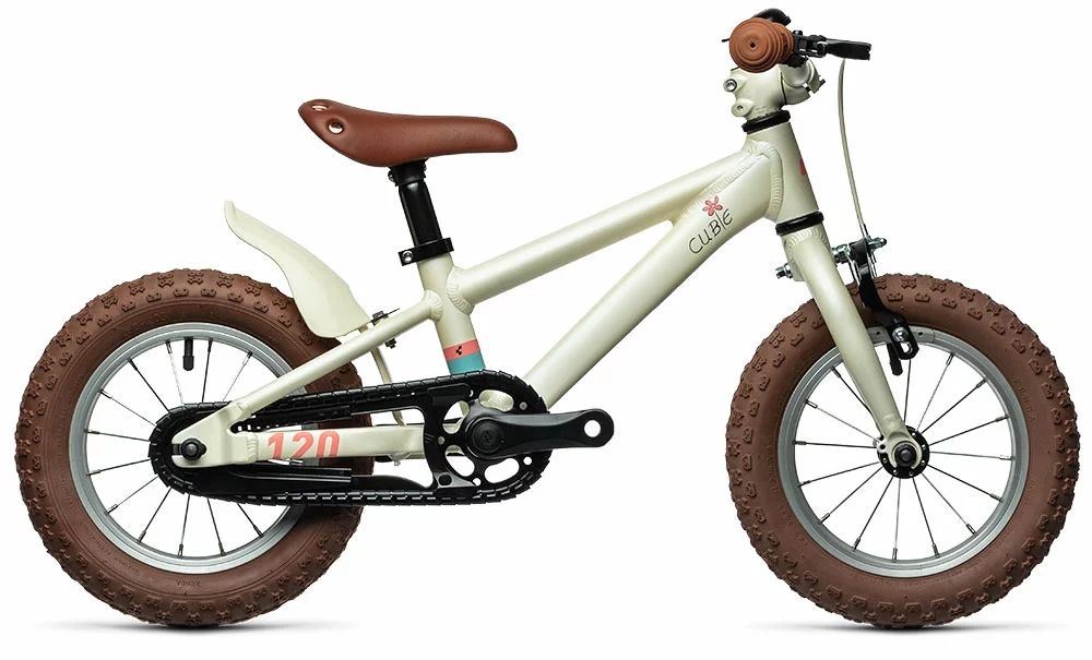 Hinten hat es eine Rücktrittbremse, vorne eine leichte, einfach zu bedienende Felgenbremse – mit Hebeln, die optimal auf kleine Hände abgestimmt sind. Ein tiefer Einstieg ermöglicht souveränes Handling und der integrierte Kettenschutz verhindert, dass die Kids mit den Hosenbeinen hängenbleiben. Wir haben das Cubie 120 am Hinterrad sogar mit einem Schutzblech ausgerüstet – für top Wetterschutz bei Regen und Nässe.