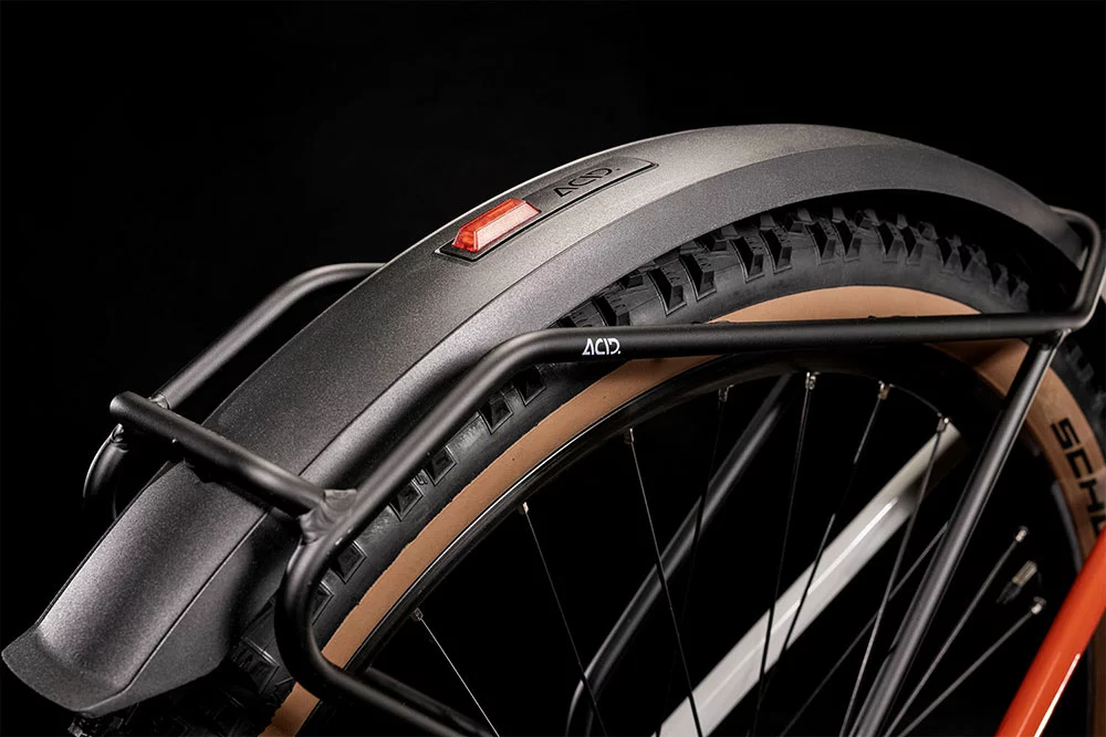 Mit der breit gefächerten Deore 11-fach Schaltung von Shimano wechselt man leicht und präzise von Gang zu Gang und meistert jede Route und jeden Anstieg ohne Probleme. Die hydraulischen Shimano Scheibenbremsen verzögern und stoppen die 2.35 Zoll Schwalbe Reifen kontrolliert und gleichmäßig. Und wer auf holprigen Wegen unterwegs ist, profitiert von der X-Fusion Luftfedergabel für Fahrkomfort und Spurtreue. übrigens, für den täglichen Weg ins Büro oder die Shoppingtour durch die City haben wir praktisches Zubehör verbaut: extralange Schutzbleche, Seitenständer, Lichter.