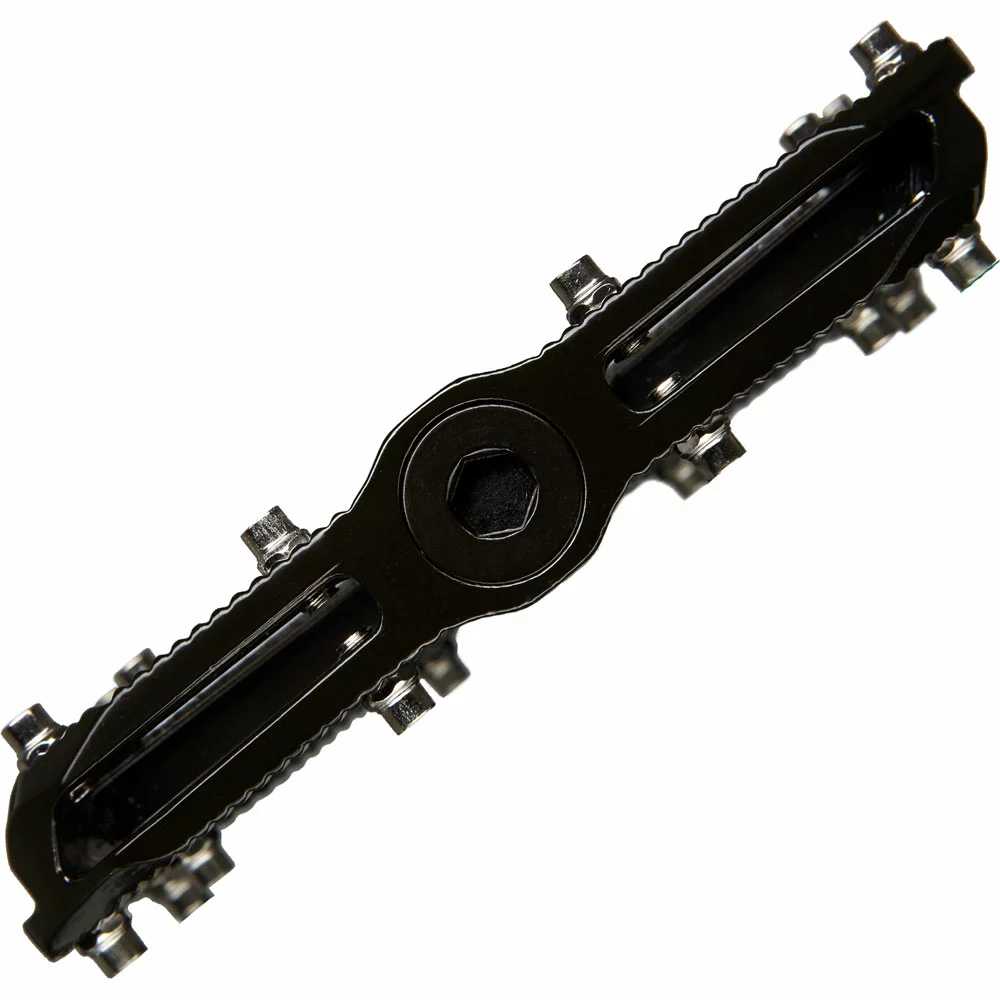 Die flachen Katana Blade Pedale bestehen aus einem robusten Aluminium-Korpus und sind mit jeweils zehn Evo-Pins für den nötigen Grip auf allen Trails versehen. Der Alu-Pedalkörper und die CNC-gefrästen Achsen sorgen in Verbindung mit hochwertigen Kugellagern für eine hohe Lebensdauer in jedem Einsatzbereich, selbst unter härtesten Bedingungen. Blade steht für flach, robust und schnell!