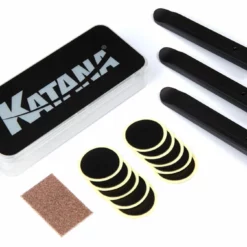Das GP-3 Flickzeug-Kit von Katana ist schnell zur Hand und verfügt über alles Nötige, um einen defekten Schlauch zu reparieren. Mit zehn selbstklebenden Flicken und Schmirgelpapier lassen sich Reparaturen schnell und sauber durchführen.