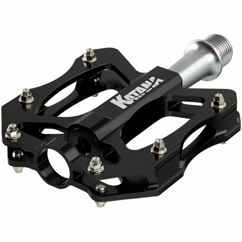 Die flachen Katana X7 S-Light Plattformpedale im Midsize-Format bestehen aus einem leichten robusten Aluminium-Korpus und sind jeweils mit 6 EVO-Pins pro Seite fĂŒr den nötigen Grip auf allen Trails versehen. Der leichte Alu-Pedalkörper und die CNC-gefrĂ€sten Achsen sorgen in Verbindung mit hochwertigen Kugellagern fĂŒr eine hohe Lebensdauer in jedem Einsatzbereich, selbst unter hĂ€rtesten Bedingungen.
