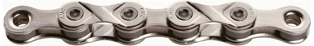 Die extrem halbare X8 Kette von KMC ohne LaufrichtungsabhĂ€ngigkeit und einer vernickelten OberflĂ€che fĂŒr 6/7/8-fach Schaltsysteme.