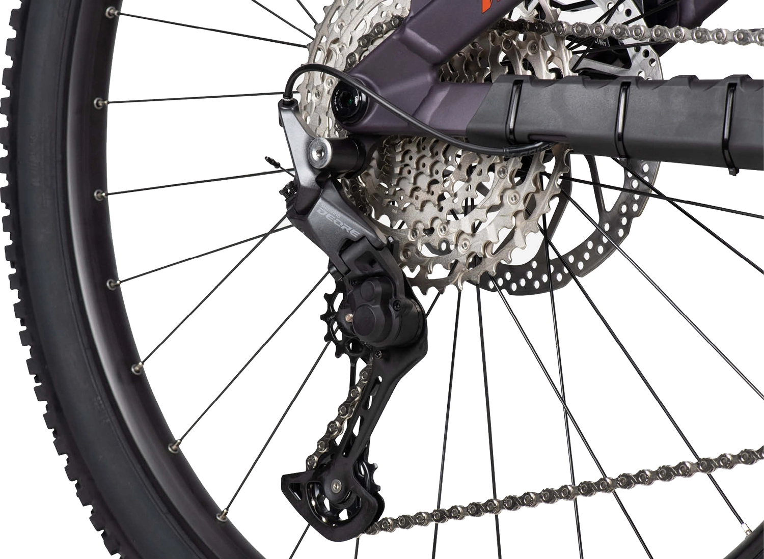 Das Hardtail hat dank dem riesigen internen Bosch-Akku mit 750 Wh eine große Reichweite, so dass du noch längere Touren pro Ladung genießen kannst. Für viel Spaß sorgen die laufruhigen 29″ Räder, die dank 2,5“ bzw. 2,4″ breiten Maxxis Reifen massig Grip auf die Strecke bringen. Die Federgabel RockShox 35 Silver TK hat mit 120 mm richtig viel Federweg und bügelt auch grobe Unebenheiten platt. Für perfekte Bremsperformance sorgt die Shimano M4100 Bremse mit 4 Kolben vorne und 2 hinten.