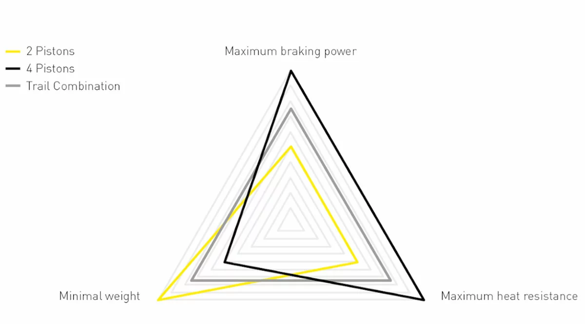 - Einteilige geschmiedete 2-Kolben Alu-Bremszange