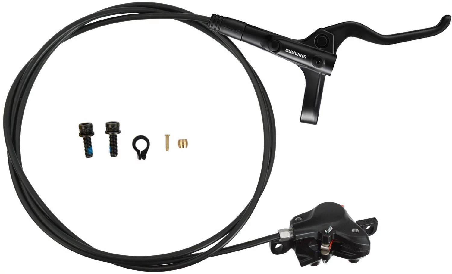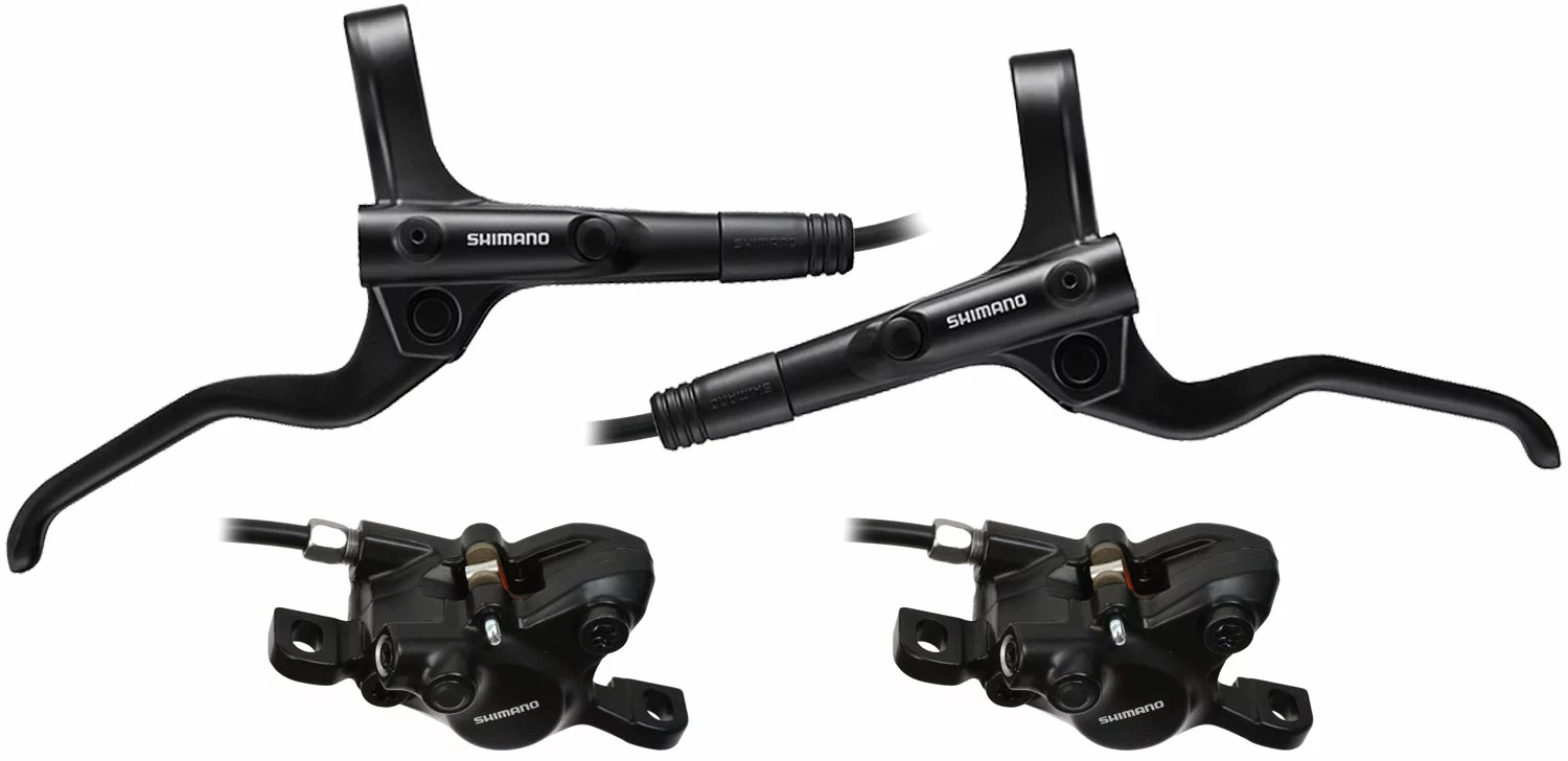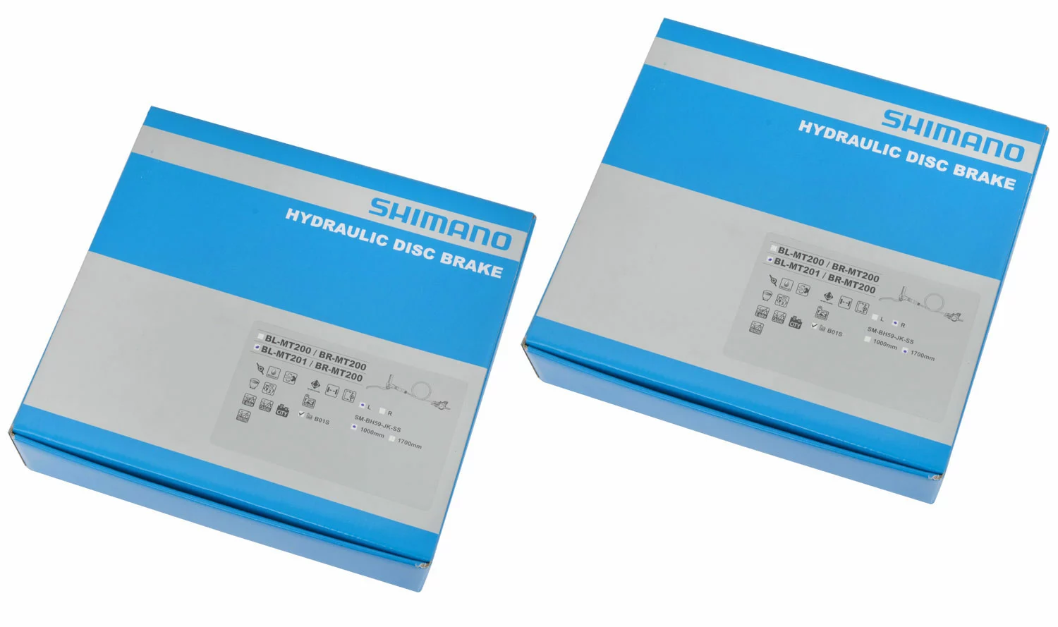 Die hydraulische Shimano BR-MT201 Scheibenbremse mit ergonomischen 3-Finger-Bremshebel stellt den MaĂstab fĂŒr kostengĂŒnstige Performance-Bremssysteme dar.