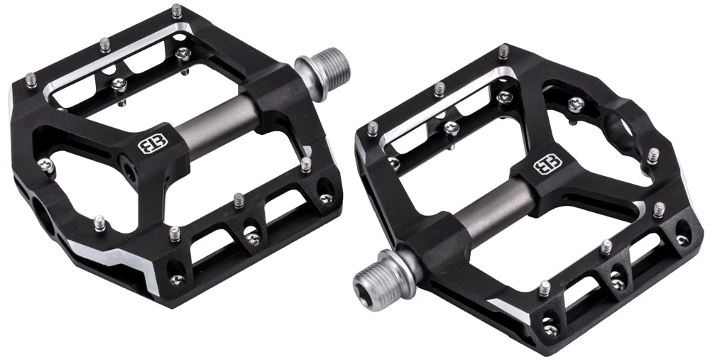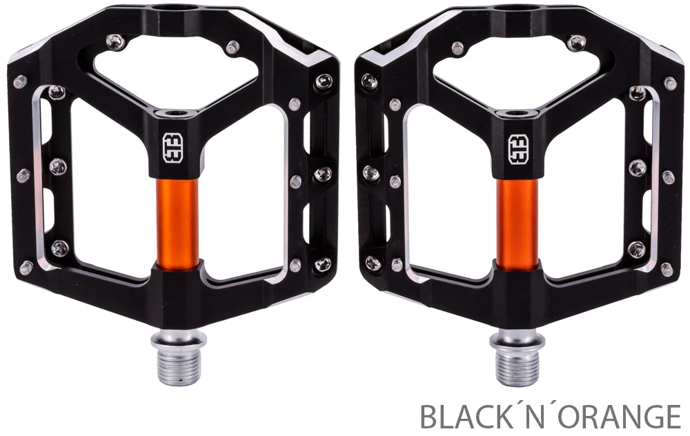 Die hochwertigen CNC-gefrästen TRIPLE EIGHT SLT 2.1 Plattformpedale aus Aluminium mit einem aggressiv flachen Design und geringem Gewicht von nur 294 g / Paar. Die austauschbaren Pins und die große, griffige Standfläche sorgen für beste Griffigkeit und Sicherheit und die Cr-Mo-Achse mit dreifach abgedichtetem Industrielager mit LSL-Buchse für eine lange Lebensdauer.