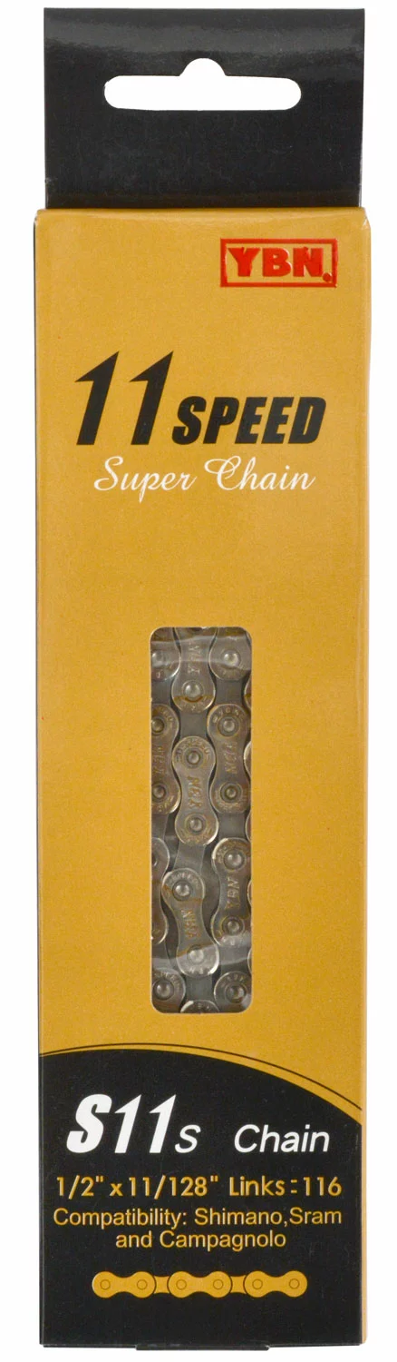 Die YBN S11s 11-fach Kette fĂŒr Shimano, Sram und Campagnolo ist extrem leistungsfĂ€hig und hĂ€lt auch hohen Belastungen problemlos stand.